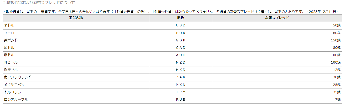 肝心の両替手数料などはどうなっているのかが気になるところ。