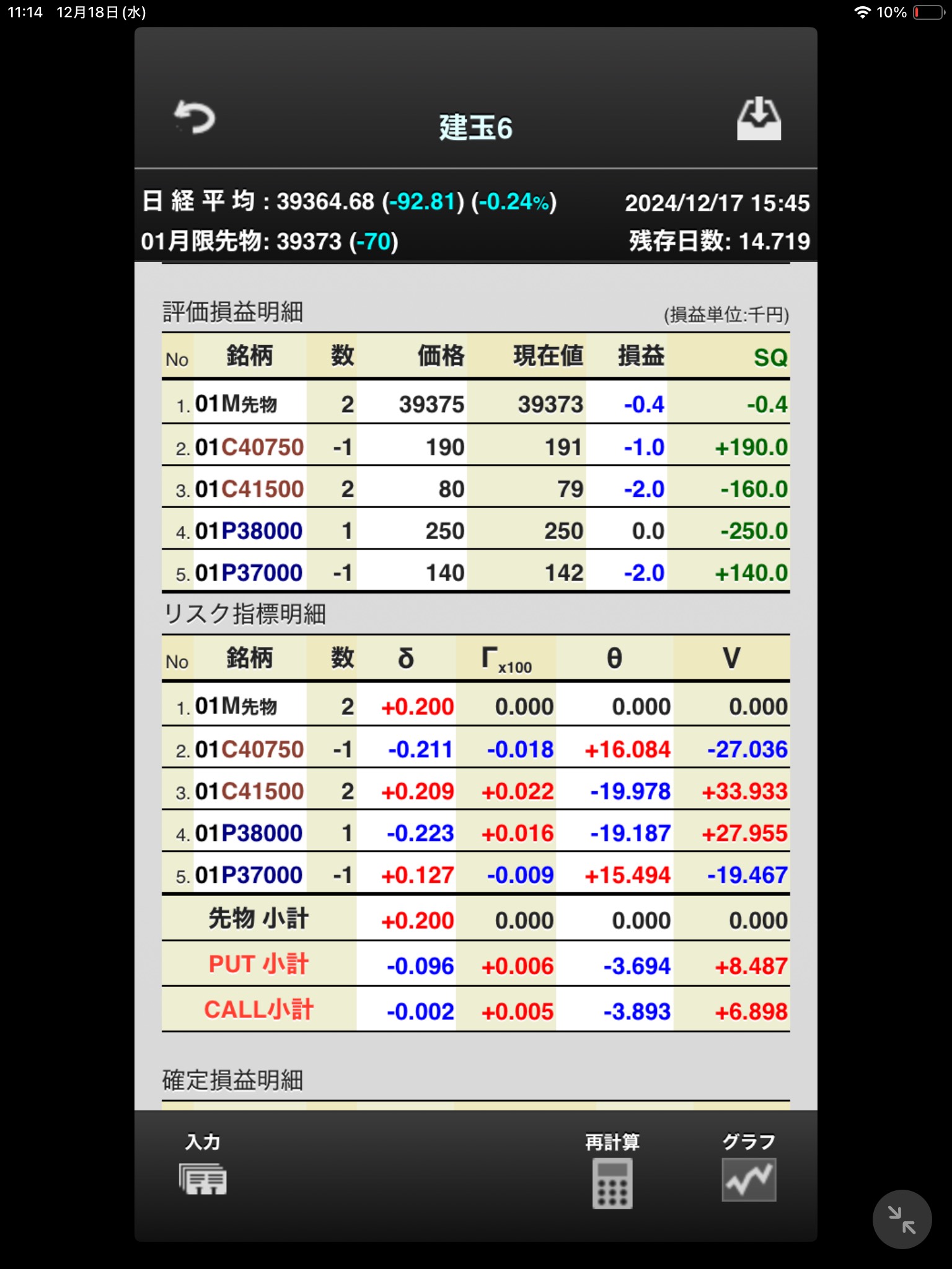 仮にセータがマイナスでそのままの価格を推移したらセータ分で大きく含み損を抱えるようなポジであっても、IVが動いたり、勿論原資産が動いてデルタ分でそのマイナスを補ってくれるかもしれない