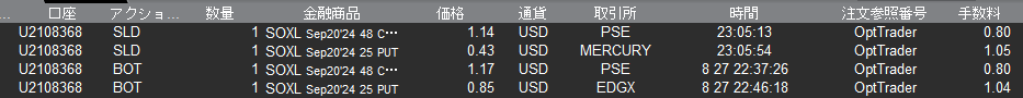 プットを建てるときに約10ドル分高く買わされた(原資産が下落中でなかなか買えず)というのもあるけど。