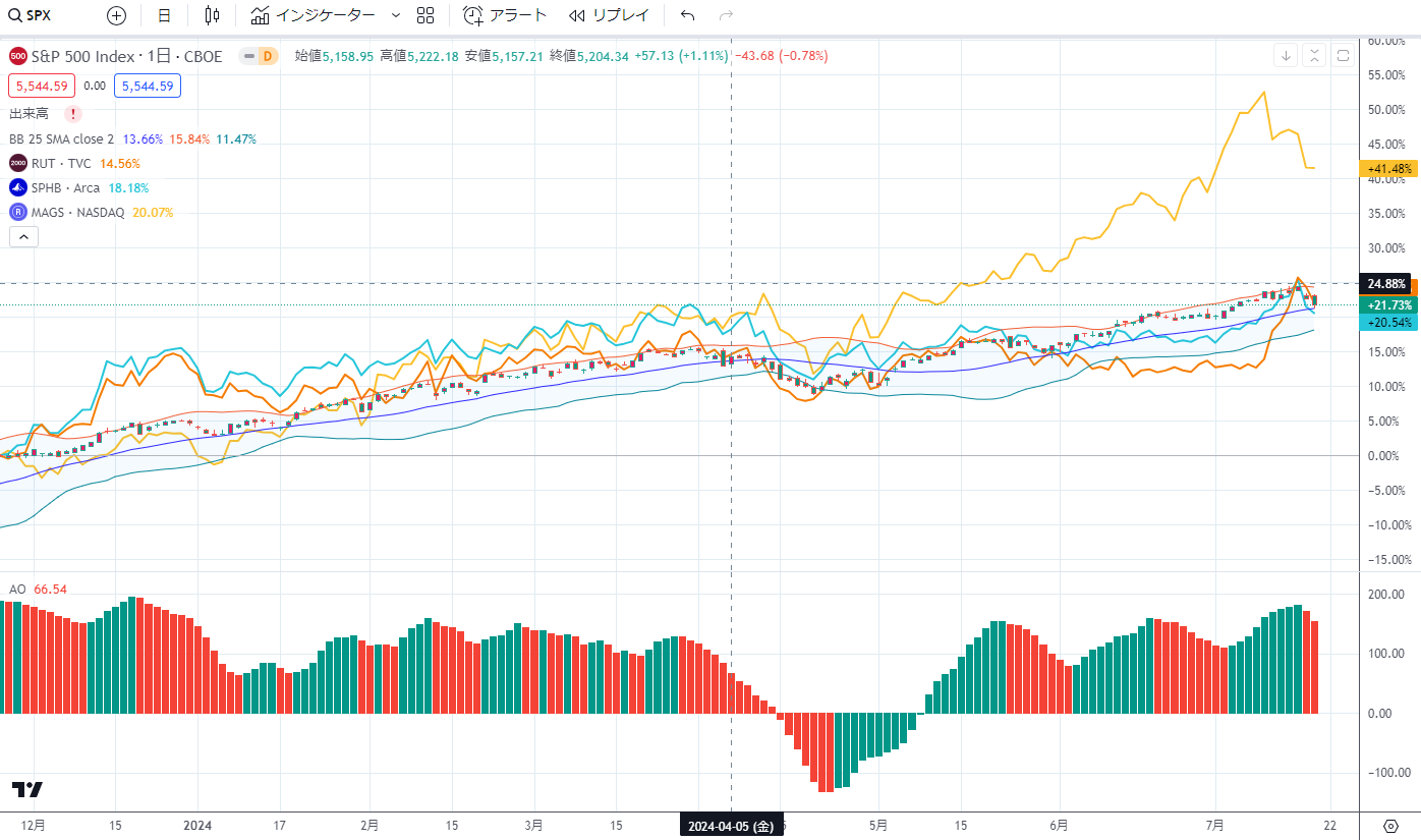 改めてS&P500やハイベータ、マブニフィセントセブンとRUTを比較してみると既においついているな。。。w